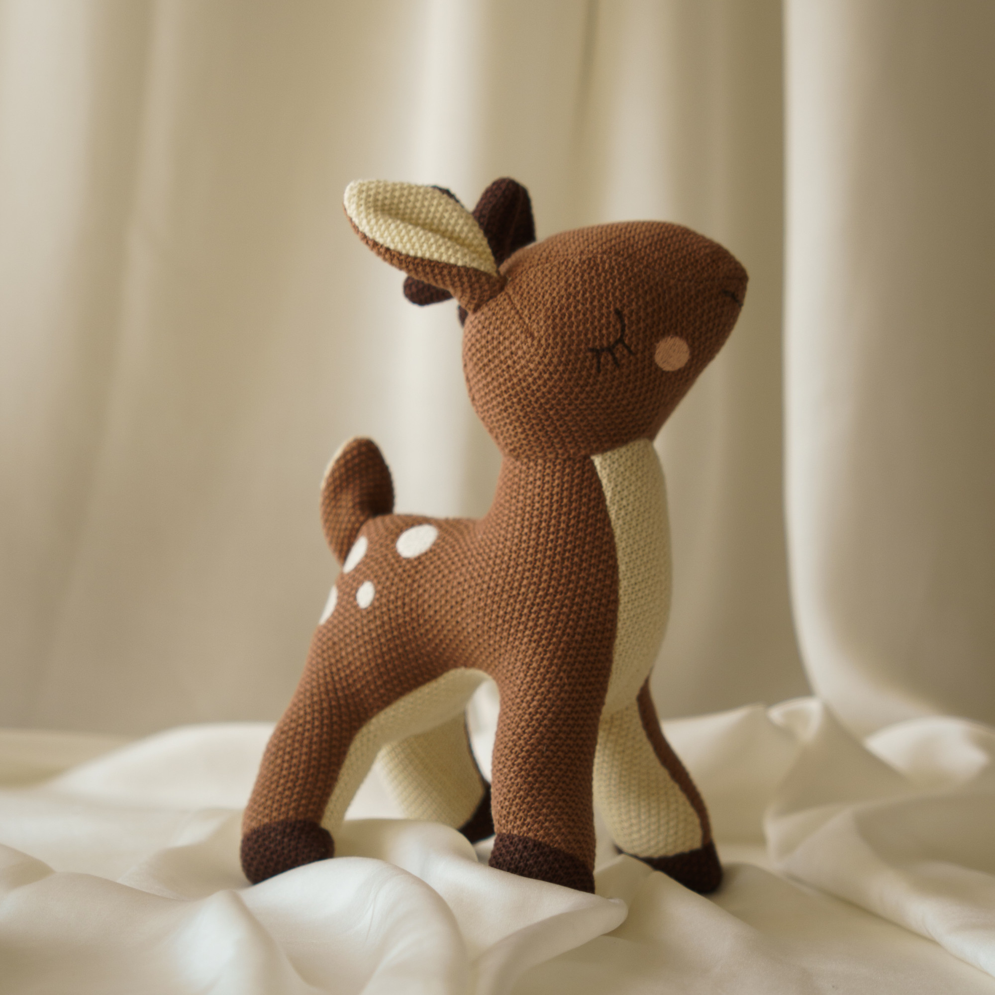 Meet our Baby Deer, a soft and gentle companion for little ones. Handcrafted with soft cotton yarn, this lightweight toy is perfect for cuddles, imaginative play, and tiny hands to hold. Safe, non-toxic, and baby-friendly, it makes a charming keepsake for any nursery or playroom.