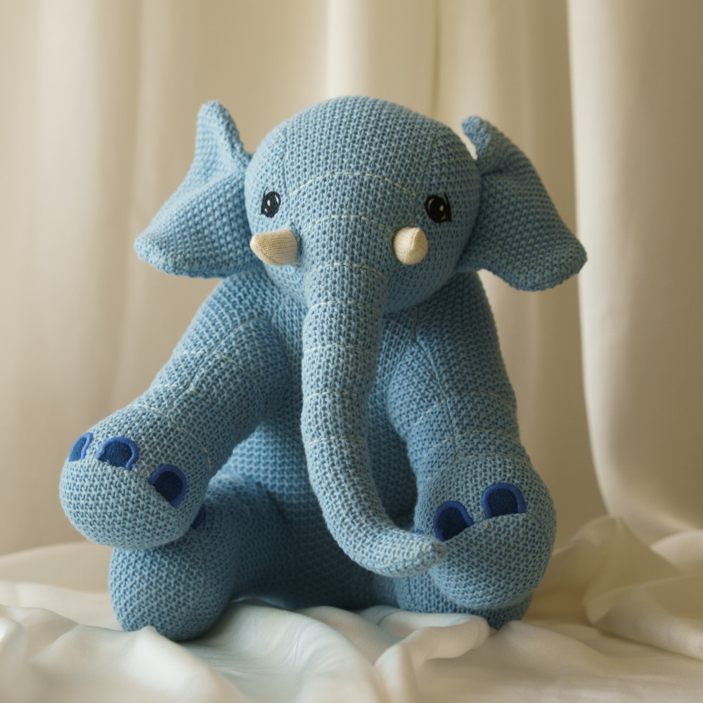 Add charm to playtime with our Sitting Elephant Toy. This hand-crocheted elephant is soft, lightweight, and perfectly sized for little hands to hold and cuddle. Safe, non-toxic, and durable, it encourages imaginative play while becoming a lovable keepsake for any nursery.