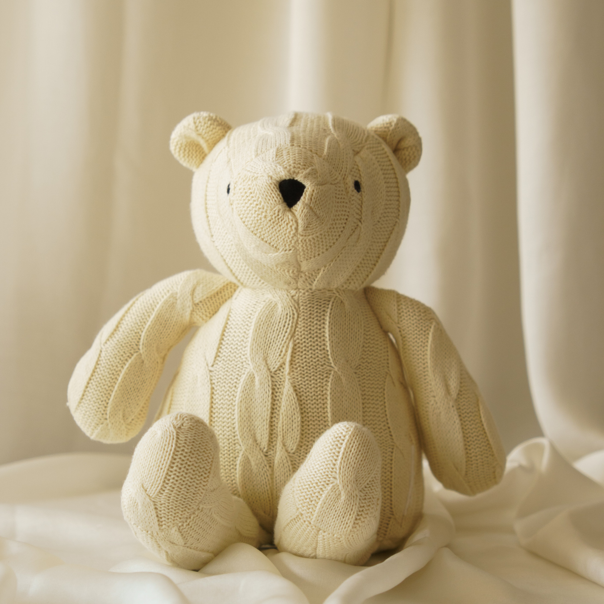 Meet our adorable Ivory Bear, a soft companion for little ones. Handcrafted with gentle cotton yarn, this cuddly bear is safe for babies, lightweight, and perfect for imaginative play or snuggly moments. Its neutral ivory tone makes it a timeless keepsake for any nursery or playroom.