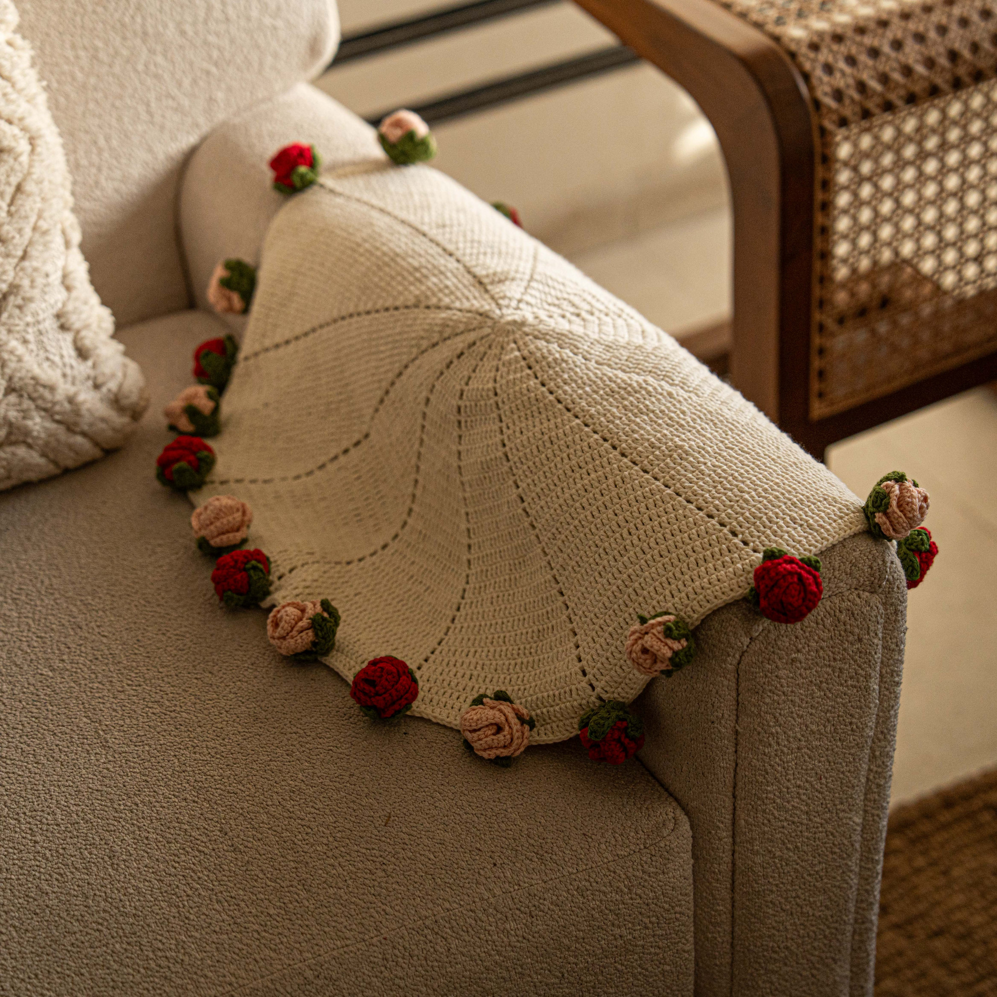 - Blanket: Rosy Throw Blanket with Crochet Bouquet Border
