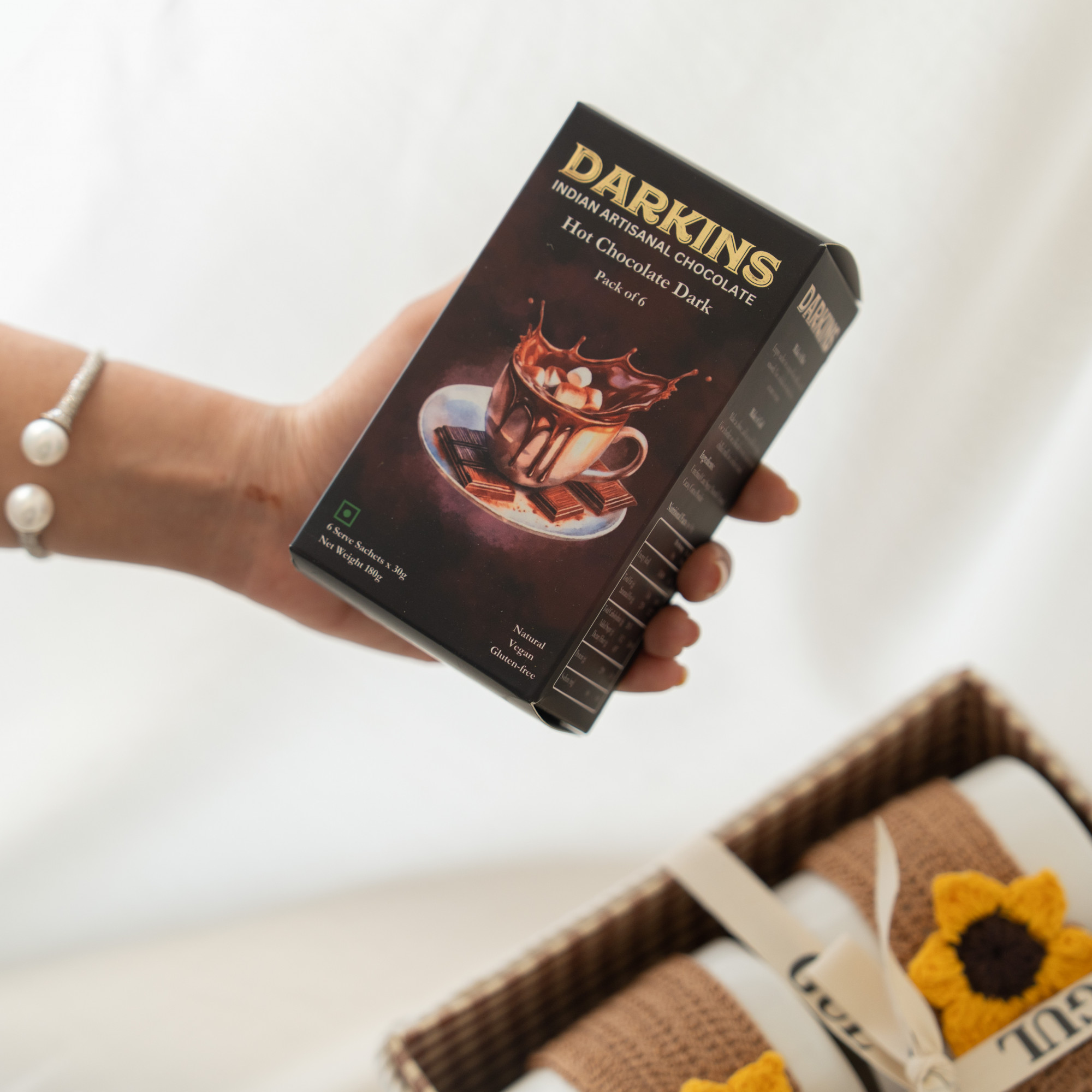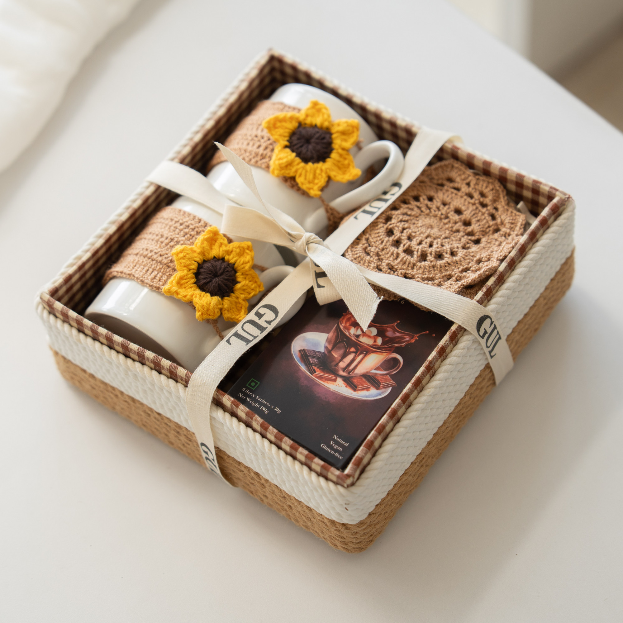 • Chocolate (premium selection) - Material: 100% cotton yarn (crochet items), ceramic cup, eco‑friendly packaging